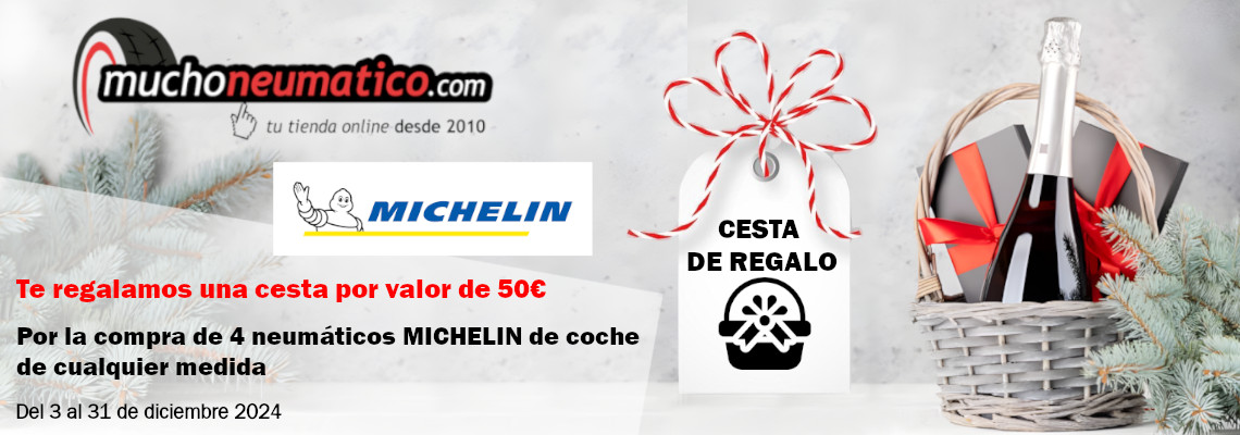 Por la compra de 4 neumáticos Michelin de cualquier medida de coche, te llevas una fantástica cesta de regalo completamente gratis. No importa el tamaño de tu vehículo, esta promoción está pensada para adaptarse a tus necesidades. Michelin es sinónimo de calidad, seguridad y durabilidad, y ahora puedes disfrutar de todo esto junto con un obsequio exclusivo que hará tu experiencia aún más satisfactoria.